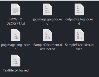 Following the encryption procedure, all folders holding encrypted files will contain a ransom note file with the name “HOW TO RECOVER!!.TXT.” The encrypted filenames are appended with the “.locked” extension by the malware.