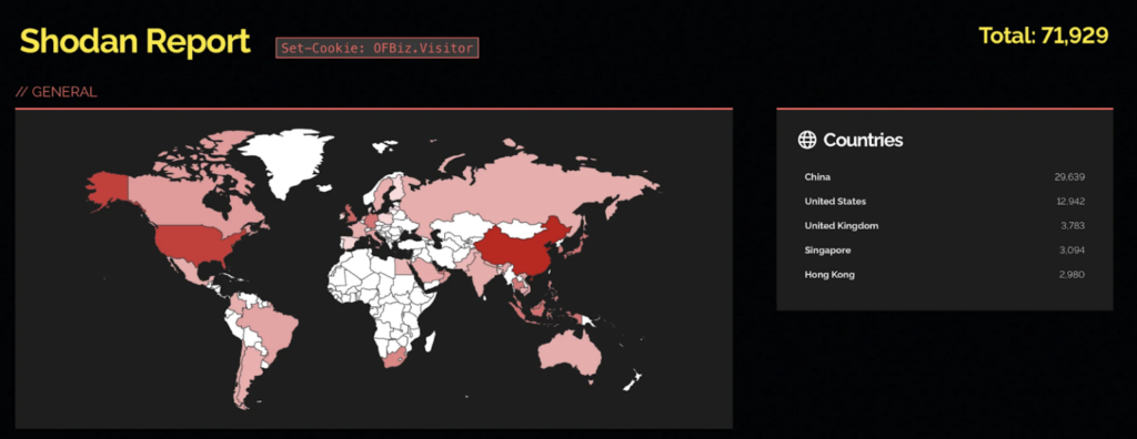 GitHub has an example of both a scanner and an exploit. Furthermore, the possible attack surface is indicated by the discovery of roughly 72,000 vulnerable Apache OFBiz instances by a Shodan search.